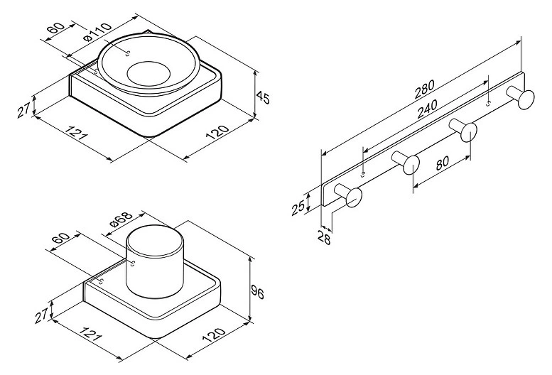 Набор аксессуаров для ванной Damixa Jupiter DAK77B2803W хром-черный матовый