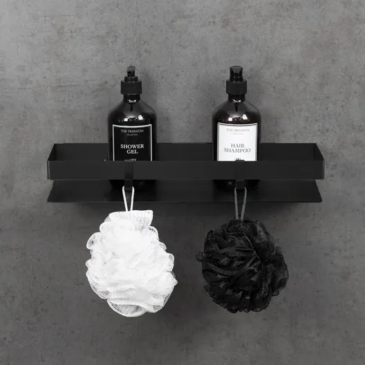 Полка Lemark Shelf Line 40 см, с крючками, черная матовая