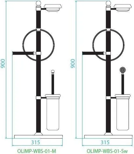 Стойка напольная Cezares Olimp-WBS-02 с держателем туалетной бумаги щёткой для унитаза, полотенцедержателем, бронза