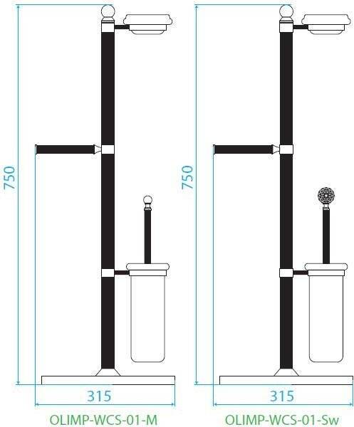 Стойка напольная Cezares Olimp-WCS-03/24 c держателем туалетной бумаги, щёткой для унитаза, золото