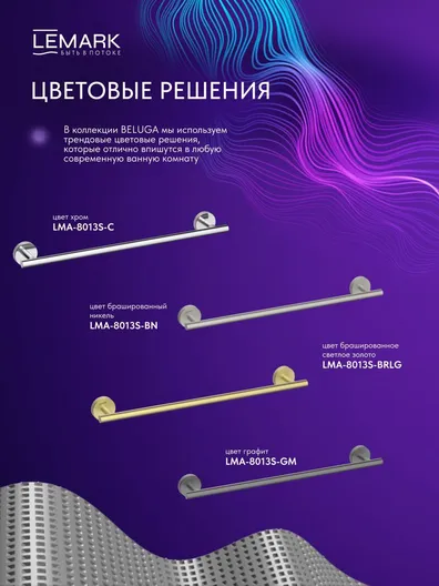 Универсальный дизайн – аксессуары выполнены в современном дизайне, легко комбинируются со всеми продуктами бренда Lemark из других коллекций.