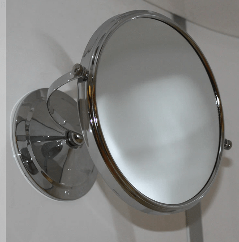Поворотное зеркало с увеличивающей стороной может быть установлено внутри душевой кабины или бокса, а также закреплено на стене в любом удобном месте ванной комнаты и служить вспомогательным компонентом основного зеркала в помещении. Зеркало обладает надежной и удобной конструкцией, которая позволяет зафиксировать его в любой удобной позиции.