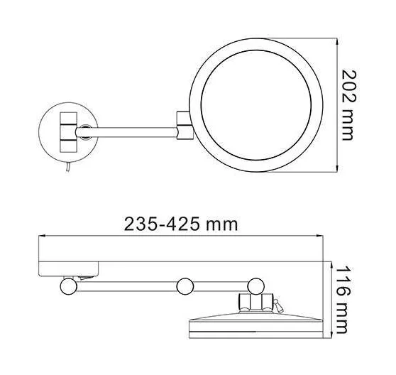 Зеркала К-1004 и К-1008 можно подключить с помощью шнура питания с вилкой или напрямую, с помощью кабеля. Работают от