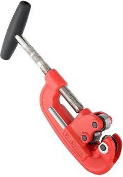 Труборез VTi.701 предназначен для быстрой резки труб из обычной и нержавеющей стали диаметром от 10 до 42 мм. Конструкция резака обеспечивает оптимальную передачу усилия на трубу. Материал режущего диска (ролик отрезной для стальных труб) – закаленная высоколегированная сталь. Широкие ролики гарантируют надежный ход диска по трубе. Используя резак для стальных труб VTi.701, можно непосредственно после резки приступать к нарезанию резьбы, поскольку грат не образуется.