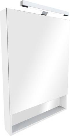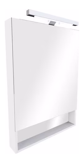 Зеркальный шкаф с подветкой из коллекции Roca The GAP в матовой белой отделке. Изготовлен из влагостойкого ДСП, а зеркальная дверцы - из безопасного стекла "триплекс". Дверцы снабжены механизмами мягкого закрывания производства BLUM (Австрия). Внутренние полочки изготовлены из алюминия. Крепеж к стене в комплекте.