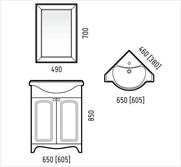 | Угловое зеркало-шкаф. За дверью расположено 2 полки (включая дно). Фасадом является багетная рама с зеркалом. Зеркало защищено противоосколочной плёнкой. Зеркало-шкаф является универсальным, то есть перевернув его, возможно повесить шкаф как для правого, так и для левого открывания. |