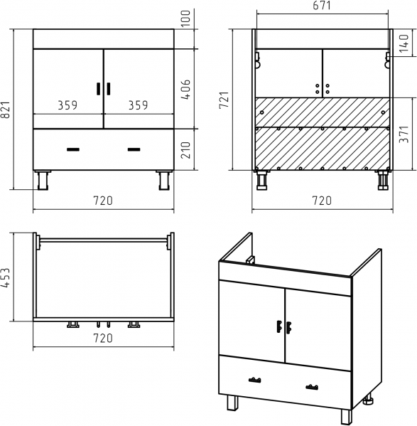Тумба под раковину Misty Дива 75 П-Див01075-013Пр