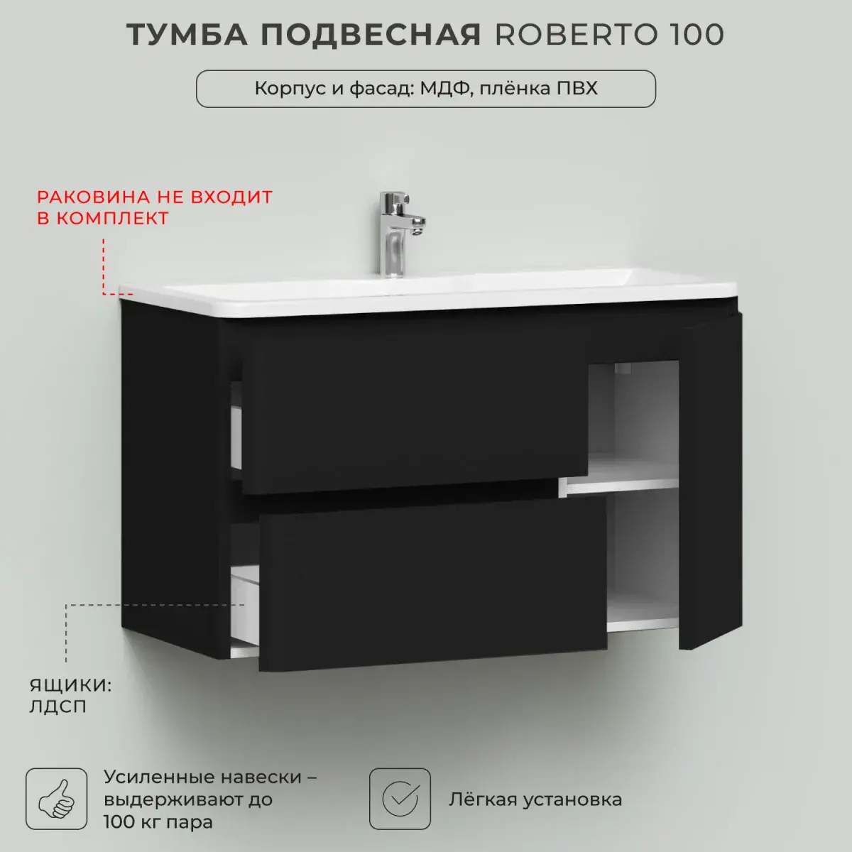Тумба под раковину Itana Roberto 100 Черный софт УТ-00194183