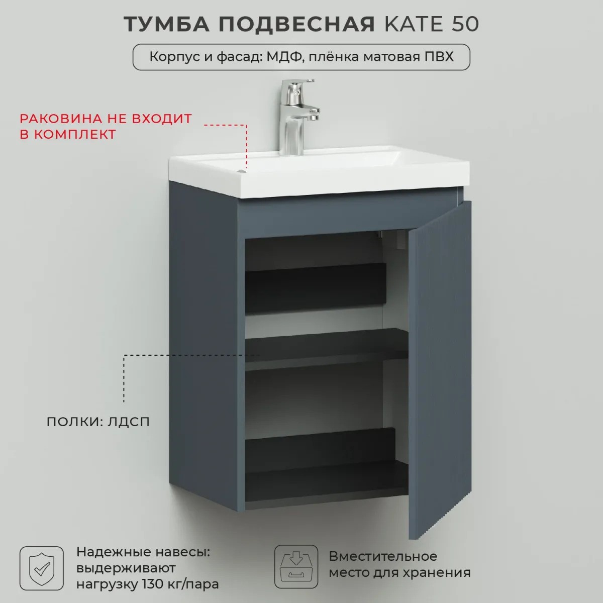 Тумба под раковину Itana Kate 50 4657810330238 правая Антрацит