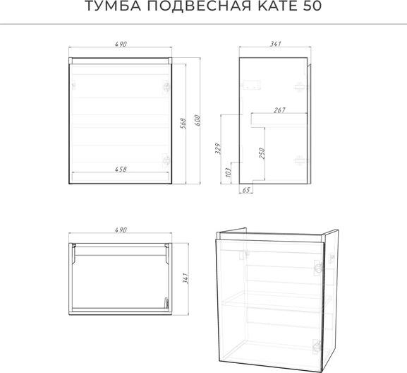 Тумба под раковину Itana Kate 50 4657810336391 правая Green wood