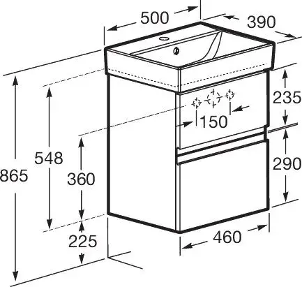 Тумба под раковину Roca Oleta 50 A857638806 2 ящика, белый глянец