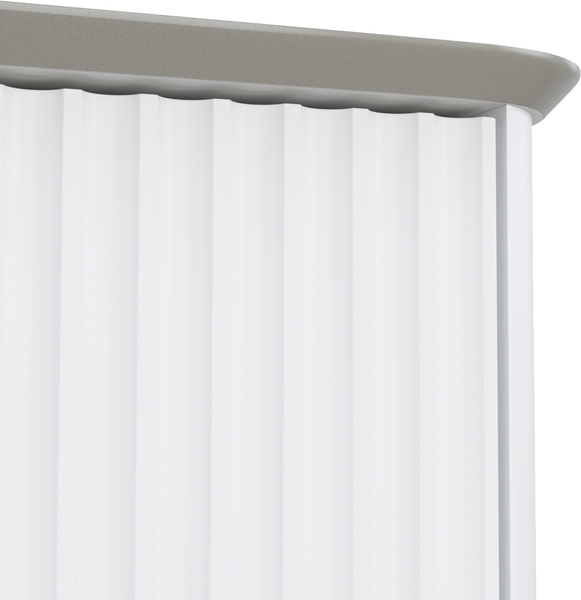 Влагостойкая матовая столешница из тонкого сверхпрочного керамогранита стильного цвета «светло-серый бетон» повторяет радиус скругления угла тумбы. Край филигранно запилен под 45 градусов и отполирован до глянцевого блеска – выглядит эстетично и при этом безопасен. Без отверстий – можно самостоятельно выбрать расположение раковины и смесителя (одного или двух комплектов).