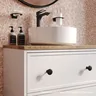 Компактная подвесная тумба Torr классического молочно-белого цвета со столешницей из МДФ в оттенке дуба верона. Сочетает в себе узнаваемый стиль и практичность популярного скандинавского дизайна. Ее четкие формы, теплый цвет дерева, фасады с декоративной филенкой, круглые ручки смотрятся гармонично и впишутся в любой современный интерьер. Подойдет любой накладной умывальник, покупается отдельно.