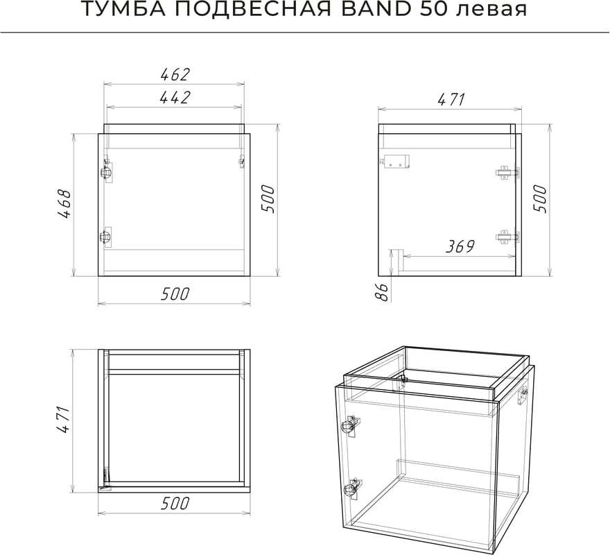 Тумба под раковину Итана Band 50 4657836461138 левая, белая матовая