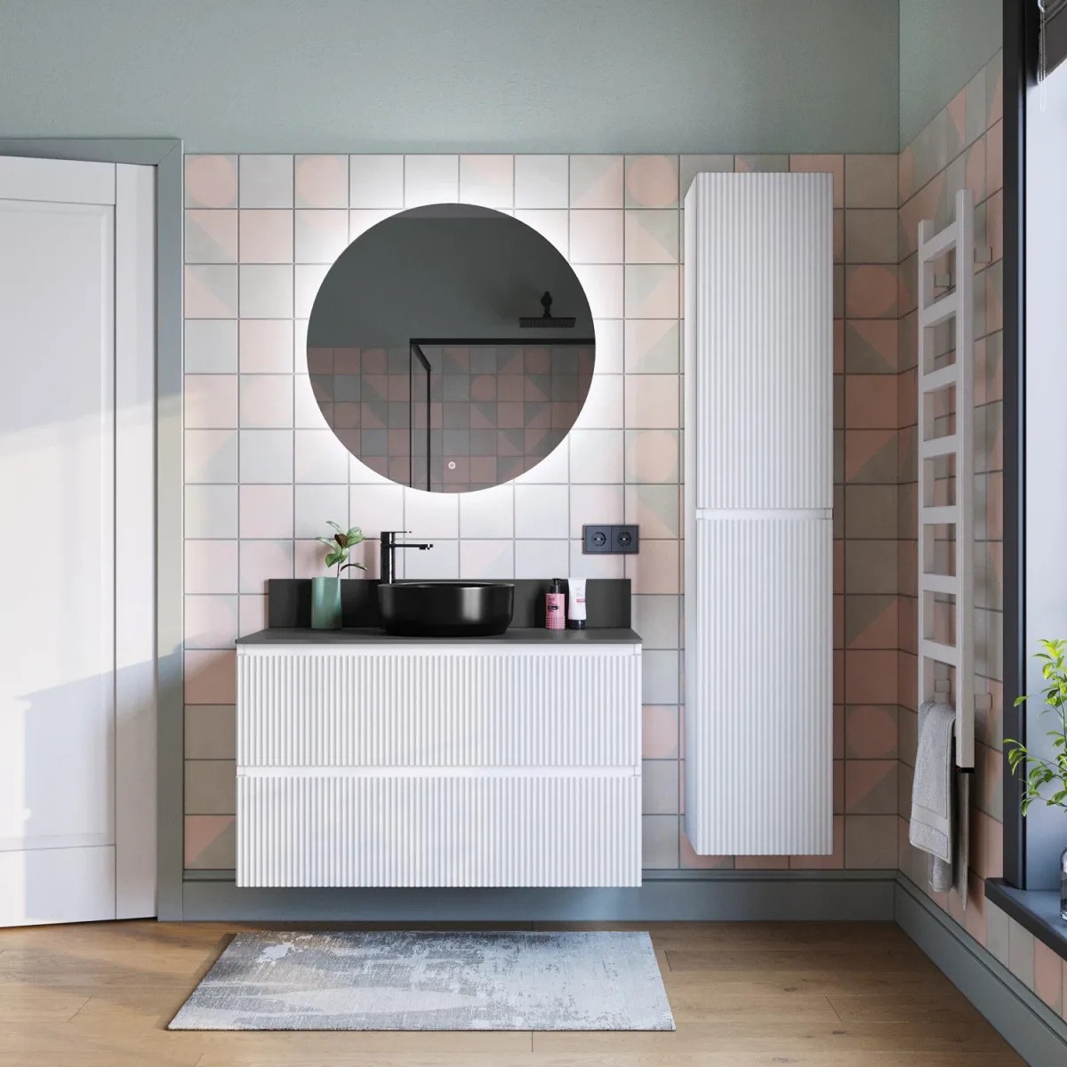 Коллекция Kate - воплотила в себе тренд на фактурные фасады. Идеальный "рубчик" - простое и стильное дизайнерское решение для декорирования фасадов - эта мебель бесспорно станет украшением современной ванной комнаты. Коллекция выполнена из МДФ и покрыта ПВХ пленкой, что делает её устойчивой к влаге, а значит долговечной. Удобные фрезерованные ручки, качественная фурнитура с доводчиками, вместительность - мы продумали все, чтобы мебель была не просто красивой, но еще и функциональной, приятной в использовании.