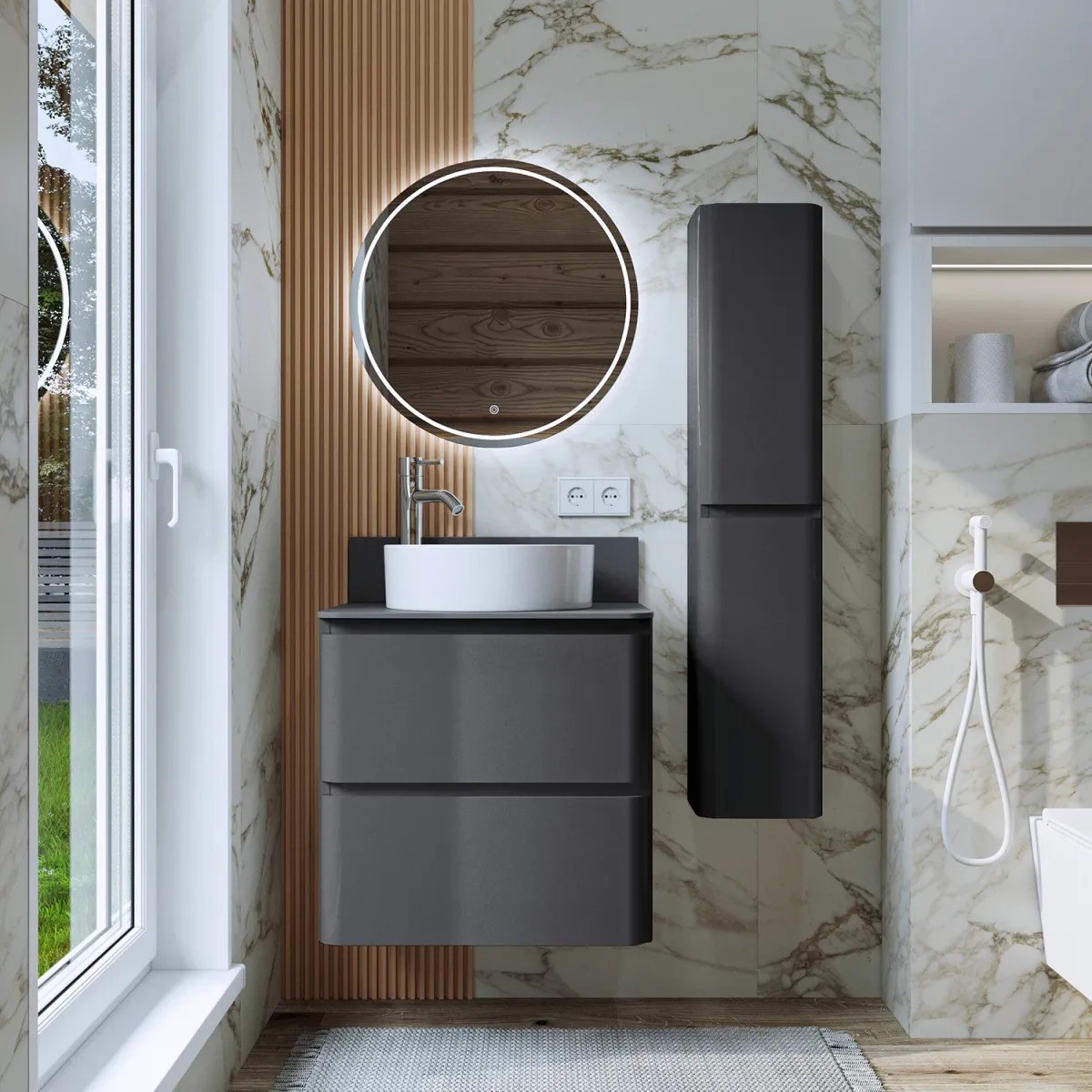 Комплекты, в состав которых входит «Тумба под раковину Itana Roberto 60 графит»