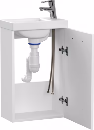 Универсальную дверцу тумбы можно установить на правую или левую сторону.