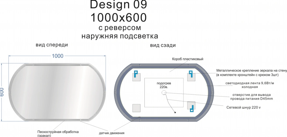 Зеркало Cersanit Design KN-LU-LED090*100-d-Os 100x60 с подсветкой