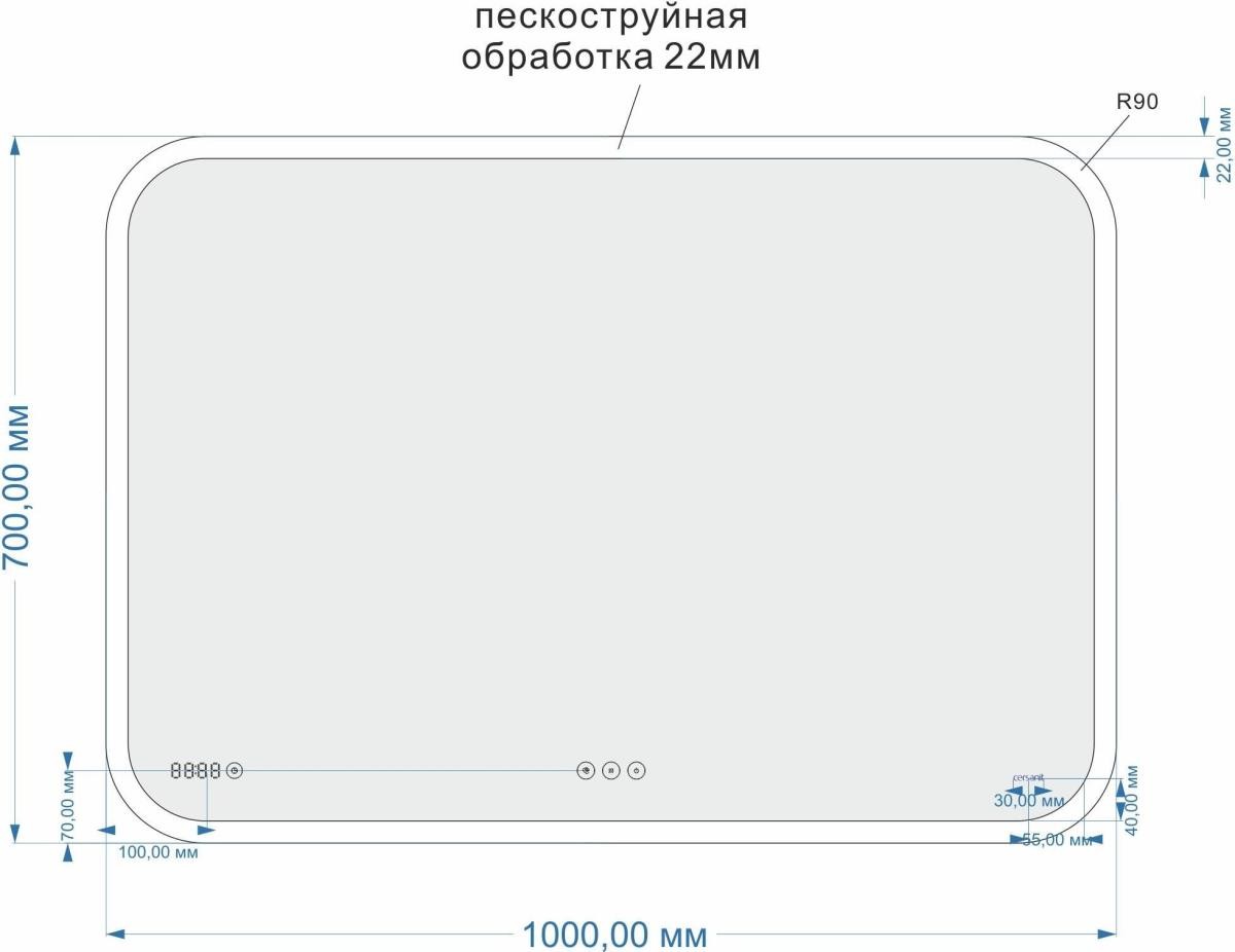 Зеркало Cersanit Pro KN-LU-LED070*100-p-Os 100 * 70, с подсветкой, сенсор, антизапотевание, часы, Bluetooth УТ-00043666