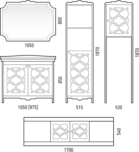 | Зеркало представляет собой фрезерованный задник и зеркало. На зеркало сзади наклеена противоосколочная плёнка. Зеркало вешается на стену при помощи мебельных подвесов. Задник покрашен в белую матовую эмаль. |