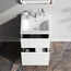 Напольная тумба бренда AM.PM коллекции Gem изготовлена из влагостойкого ЛДСП. Внутреннее пространство двух вместительных ящиков представлено в цвете "антрацит" с антискользящим эффектом. В верхнем ящике находится удобный органайзер для хранения гигиенических принадлежностей. Благодаря системе отделений органайзера каждый предмет имеет свое место что обеспечивает порядок и удобство при использовании. Такая система хранения позволяет экономить место и помогает поддерживать чистоту ванной комнаты. Фурнитура push-to-open - открытие ящика легким нажатием на фасад. Направляющие скрытого монтажа обеспечивают плавное выдвижение ящиков. Материал тумбы - влагостойкая ЛДСП.