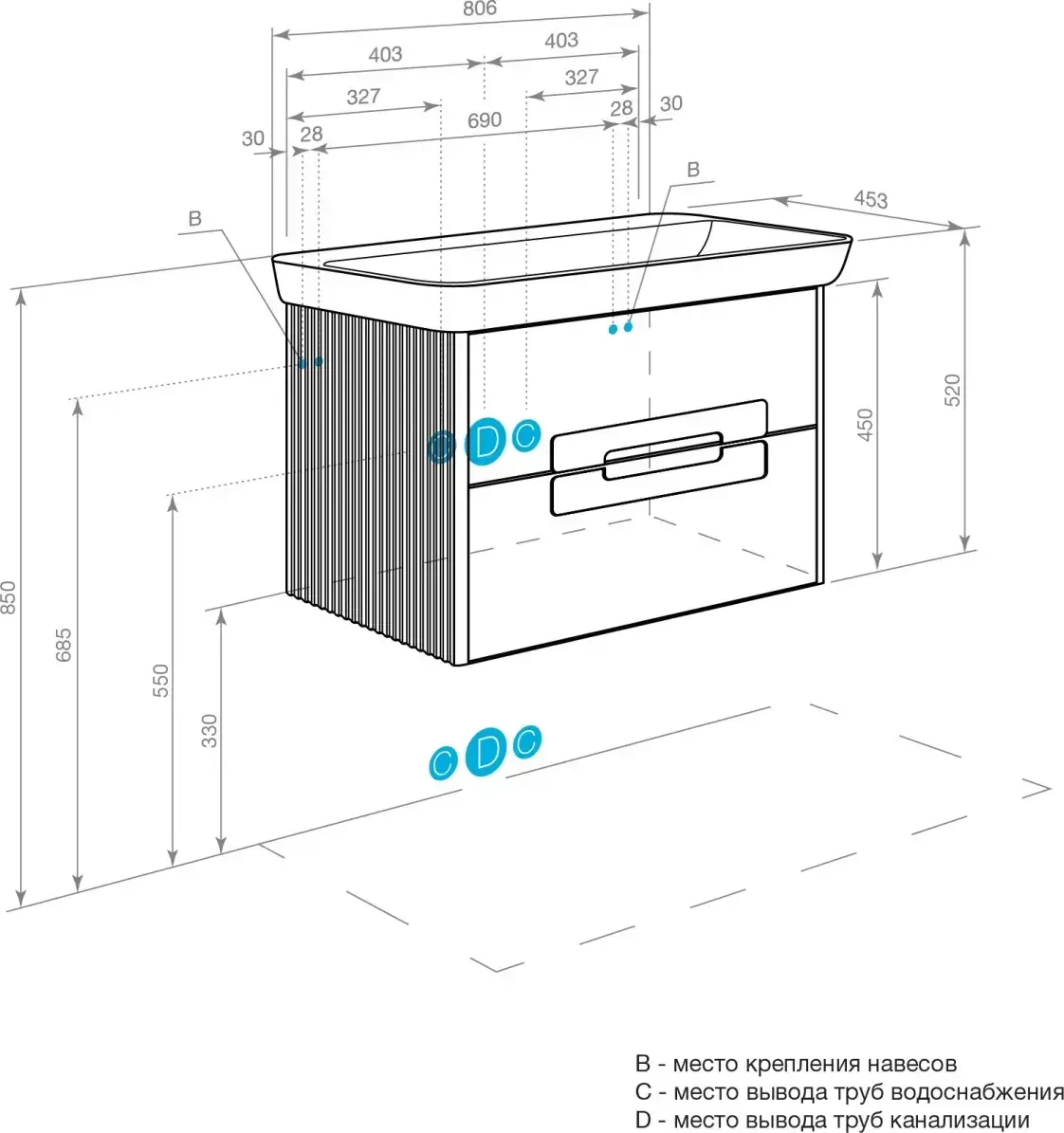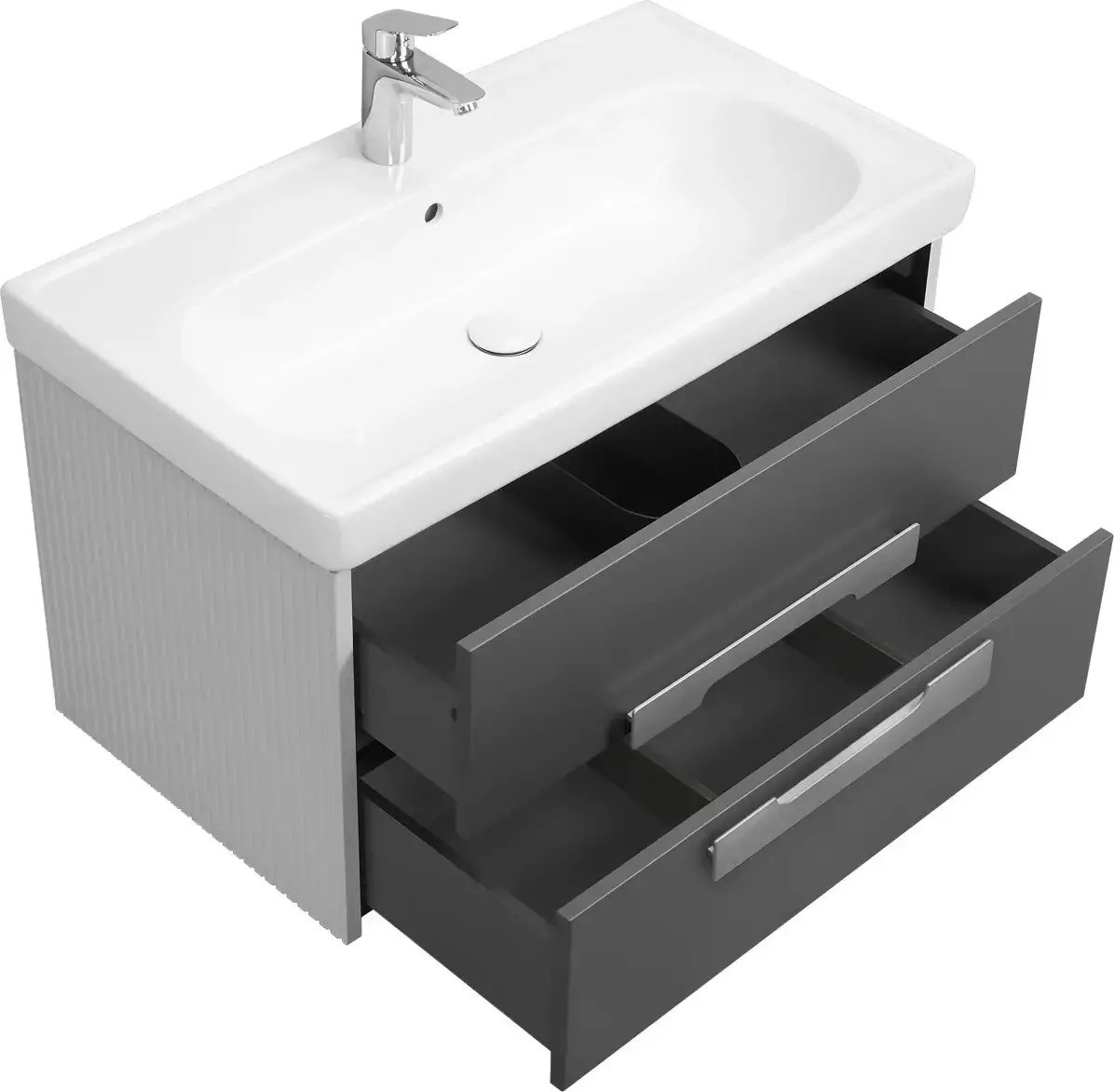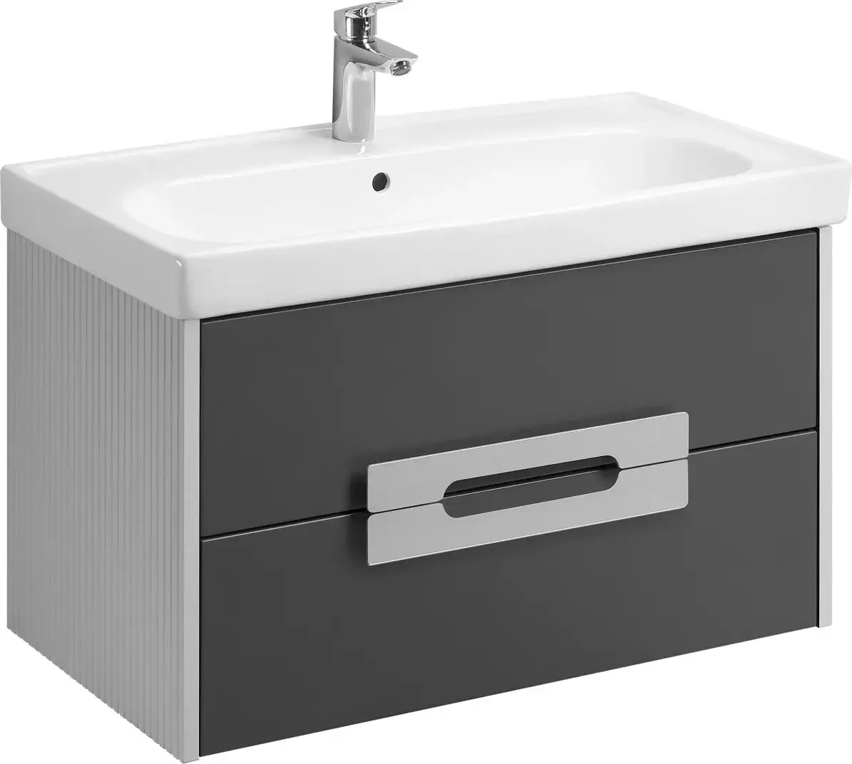 Тумба с раковиной Aquaton Ар-Деко 85 1A280401DD8D0 подвесная 2 ящика, серый кобальт K-330542