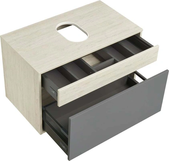 Лофт Урбан функционально состоит из двух ящиков полного выдвижения. Верхний ящик тумбы комплектуется внутренней организацией пространства: в нем очень удобно хранить небольшие аксессуары и принадлежности. Вместительный нижний высокий ящик подойдет для более крупных предметов. Функция полного выдвижения ящиков и система открывания push-to-open делают использование тумбы особенно комфортным. Подвесной модуль может комплектоваться различными по размеру и дизайну металлическими черными опорами, высокими и низкими, которые крепятся непосредственно под модуль, кроме того, доступен вариант установки модуля и без опор. Корпус тумбы выполнен из влагостойкой ламинированной ДСП в цвете дуб орегон с текстурой натурального дерева, выгодно подчеркнутым фасадами из МДФ в пленке антрацит с эффектом soft touch.