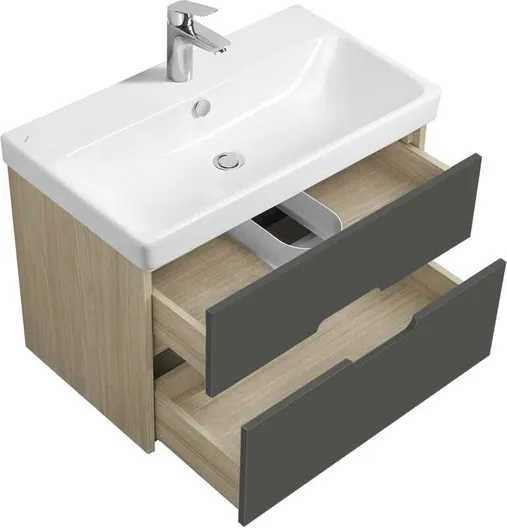 Тумба с раковиной Aquaton Оливия 80 1A283101OLUG0 подвесная грей, дуб ойстер K-277296