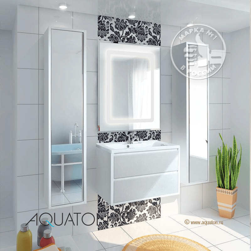 Тумба с раковиной Aquaton Римини 80 1A226701RN010 белый глянец K-4792951