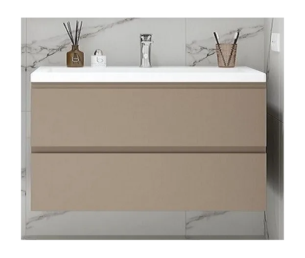 Мебель для ванной комнаты с двумя выдвижными ящиками, комплектуется раковиной из искусственного мрамора . База оснащена доводчиками скрытого монтажа с системой Soft close (плавного закрывания)