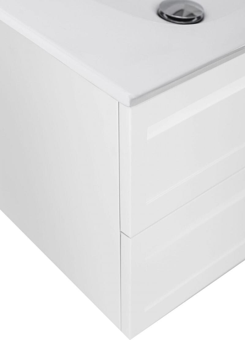 Мебель для ванной комнаты с двумя выдвижными ящиками, комплектуется керамической раковиной . База оснащена доводчиками скрытого монтажа с системой Soft close (плавного закрывания)
