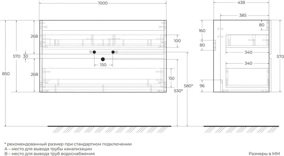 Тумба с раковиной Art&Max AM-TORINO-1000-2C-SO-GF-P Графит K-9355871