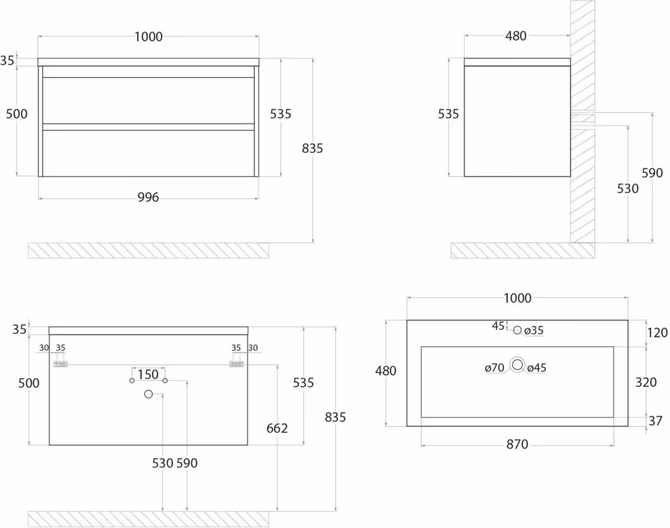 Тумба с раковиной Art&Max FAMILY-M-1000-2C-SO-HC 100 Hard Coal K-2518191
