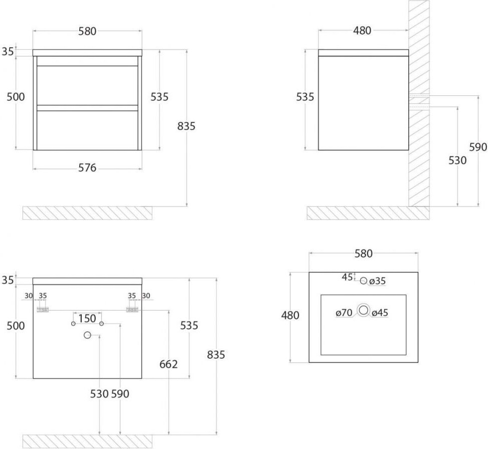 Тумба с раковиной Art&Max FAMILY-M-580-2C-SO-IS 58 Iron Stone K-6306401
