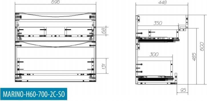 Тумба с раковиной BelBagno Bianco Lucido 70 MARINO-H60-700-2C-SO-BL-P подвесная с 2 выкатными ящиками K-5343481