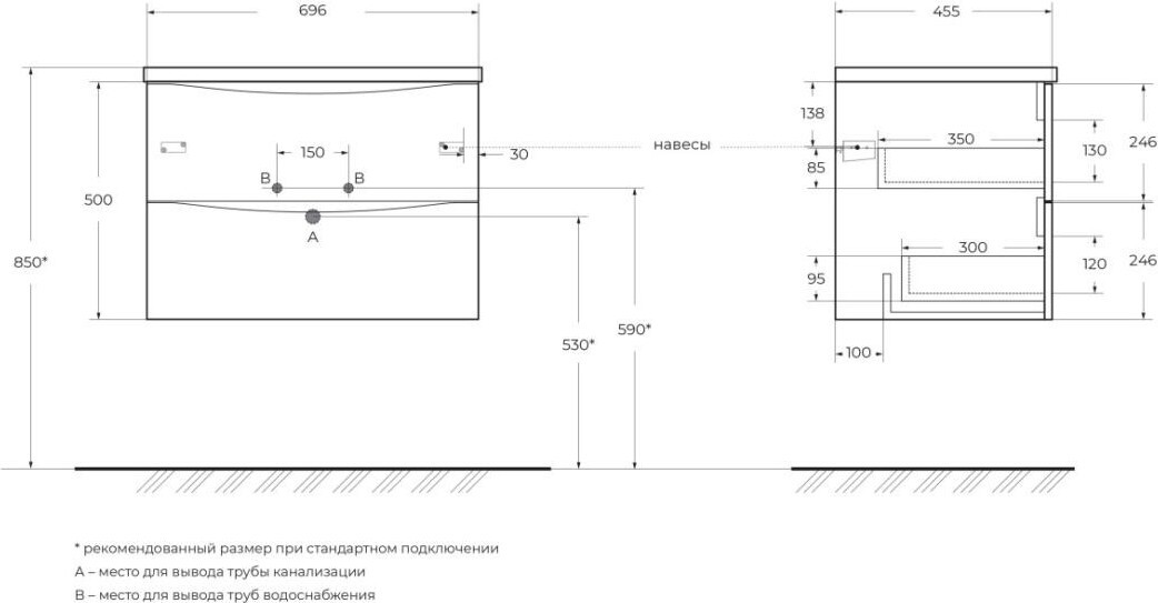 Тумба с раковиной BelBagno MARINO-CER-N-700-2C-SO-RNG-P 70 Rovere Nature Grigio