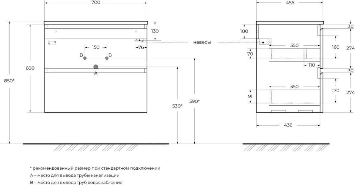 Тумба с раковиной BelBagno Uno UNO-700-2C-SO-CO 70 бежевый матовый K-486037