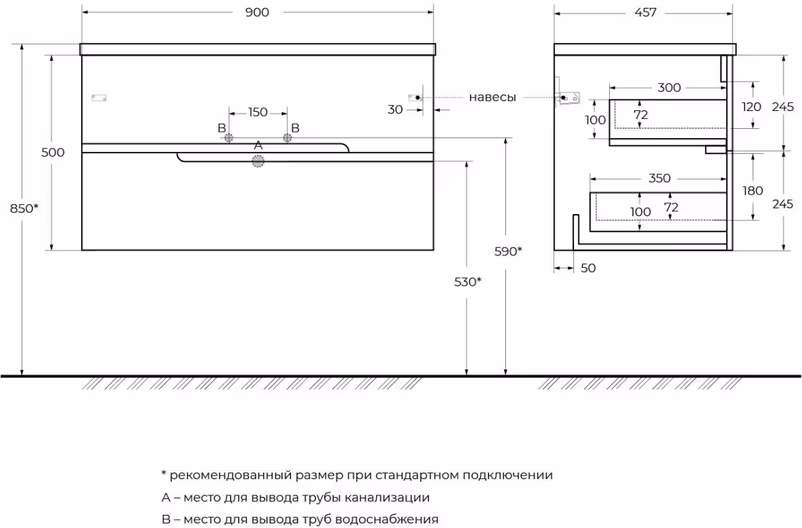 Тумба с раковиной Cezares Duet DUET-N-900-2C-SO-BL 90 Bianco Lucido