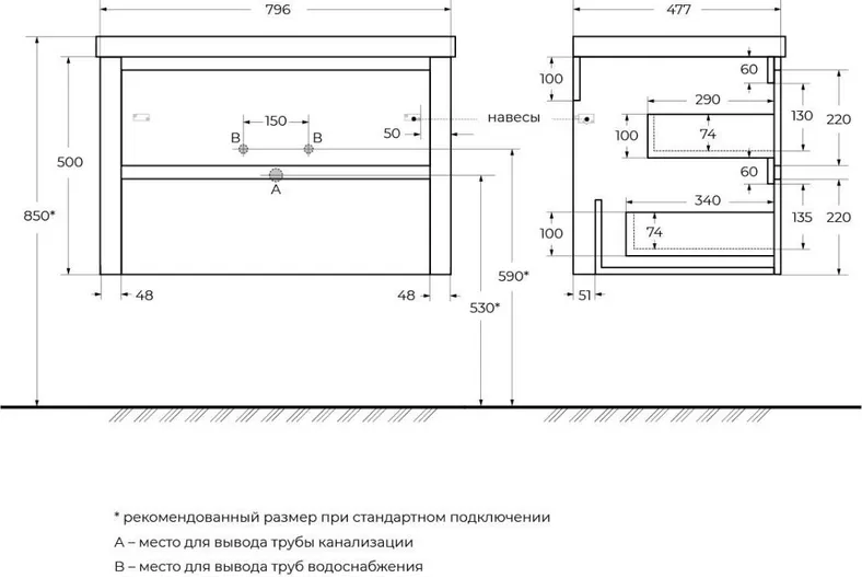 Тумба с раковиной Cezares RELAX-800-2C-SO-RC-P 80 Дуб карамельный K-7696181