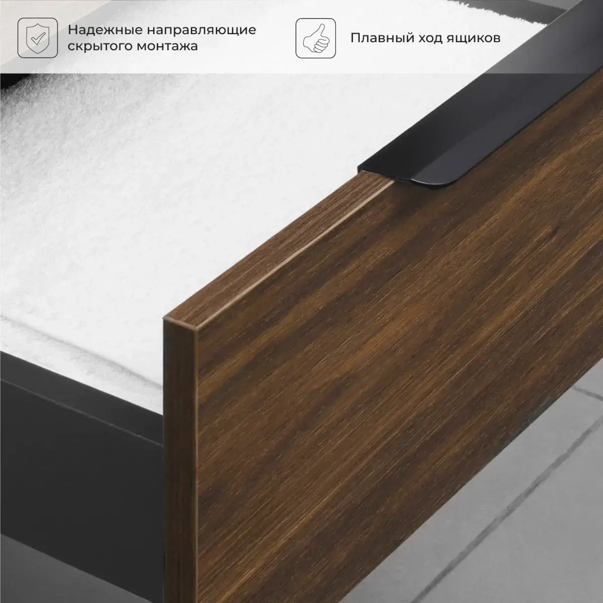 Подвесная тумба под раковину из коллекции Alta станет настоящим украшением ванной комнаты в современном стиле. Навесной способ установки тумбы в ванную дает возможность не только визуально увеличить пространство, но и обеспечивает быстрый и удобный доступ для уборки. Размеры подвесной тумбы под раковину 790*443*520 - идеальный выбор для ванной комнаты или туалета.Тумба с раковиной изготовлена из ламинированного ДСП, поэтому выдерживает высокие эксплуатационные нагрузки. Качественная фурнитура с доводчиками обеспечивает легкое открывание и плавное закрывание ящиков. Вырез под сифон универсальный, для любого типа. Благодаря своей конструкции тумба обеспечивает удобный доступ к раковине и позволяет скрыть коммуникации. Тумба под раковину в ванную оснащена двумя удобными ящиками для хранения, что позволяет разместить всё необходимое под рукой. Для точного выбора подвесной тумбы с раковиной в ванную комнату рекомендуем обратиться к схеме замеров, которая находится на фото в карточке товара, размеры изделия могут отличаться +/-1 см в связи со спецификой производства. Тумба для ванной доставляется в предварительно собранном виде, надежно упакована.