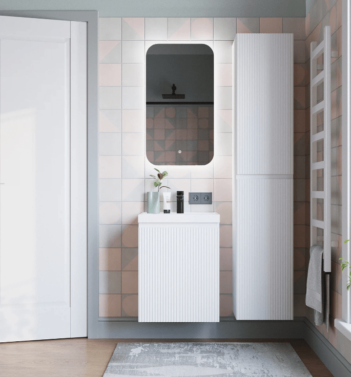 Коллекция Kate - воплотила в себе тренд на фактурные фасады. Идеальный "рубчик" - простое и стильное дизайнерское решение для декорирования фасадов - эта мебель бесспорно станет украшением современной ванной комнаты. Коллекция выполнена из МДФ и покрыта ПВХ пленкой, что делает её устойчивой к влаге, а значит долговечной. Удобные фрезерованные ручки, качественная фурнитура с доводчиками, вместительность - мы продумали все, чтобы мебель была не просто красивой, но еще и функциональной, приятной в использовании.