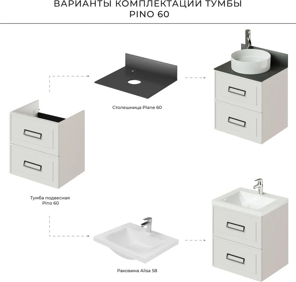 Тумба с раковиной Итана Pino 60 4657810334083 керамик K-9962561