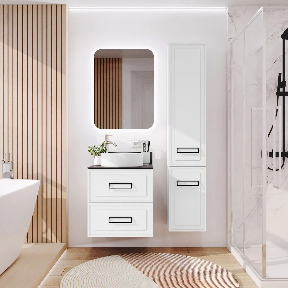 Модная и актуальная, строгая и элегантная коллекция в стиле нео-классика украсит современную ванную комнату. Строгую фрезеровку фасадов подчеркивает современная, дерзкая ручка. Подвесная тумба со столешницей украсит ванную комнату в современном стиле. Тумба для ванной выполнена из влагозащитного МДФ в пленке ПВХ и будет радовать Вас долгие годы. Качественная фурнитура с доводчиками обеспечивает легкое открывание и закрывание ящиков. Благодаря подвесному типу мебели легко поддерживать чистоту в ванной комнате. Вырез под сифон универсальный, для любого типа. Благодаря своей конструкции тумба обеспечивает удобный доступ к раковине и позволяет скрыть коммуникации. Тумба со столешницей в ванную оснащена удобными ящиками для хранения, что позволяет разместить всё необходимое под рукой. Для точного выбора тумбочки со столешницей в ванную комнату рекомендуем обратиться к схеме замеров, которая находится на фото в карточке товара, размеры изделия могут отличаться +/-1 см в связи со спецификой производства. Укомплектуйте тумбу со столешницей из керамогранита настольной раковиной, пеналом и зеркалом.