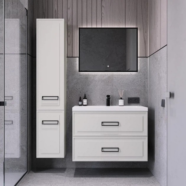 Модная и актуальная, строгая и элегантная коллекция в стиле нео-классика украсит современную ванную комнату. Строгую фрезеровку фасадов подчеркивает современная, дерзкая ручка. Подвесная тумба украсит ванную комнату в современном стиле. Коллекция выполнена из влагозащитного МДФ в пленке ПВХ и будет радовать Вас долгие годы. Качественная фурнитура с доводчиками обеспечивает легкое открывание и закрывание ящиков и дверок. Благодаря подвесному типу мебели легко поддерживать чистоту в ванной комнате. Укомплектуйте тумбу раковиной из искусственного камня нашего производства или столешницей из керамогранита и настольной раковиной.