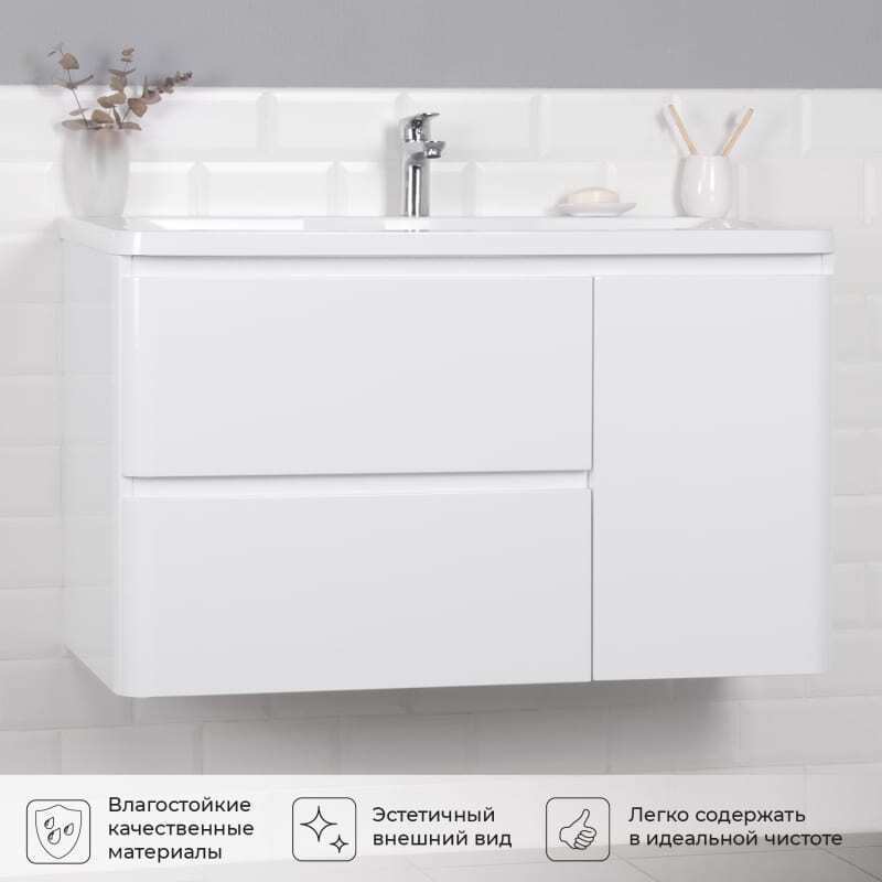 Тумба с раковиной Итана Roberto 100 4657792952954 белый глянец K-5973541