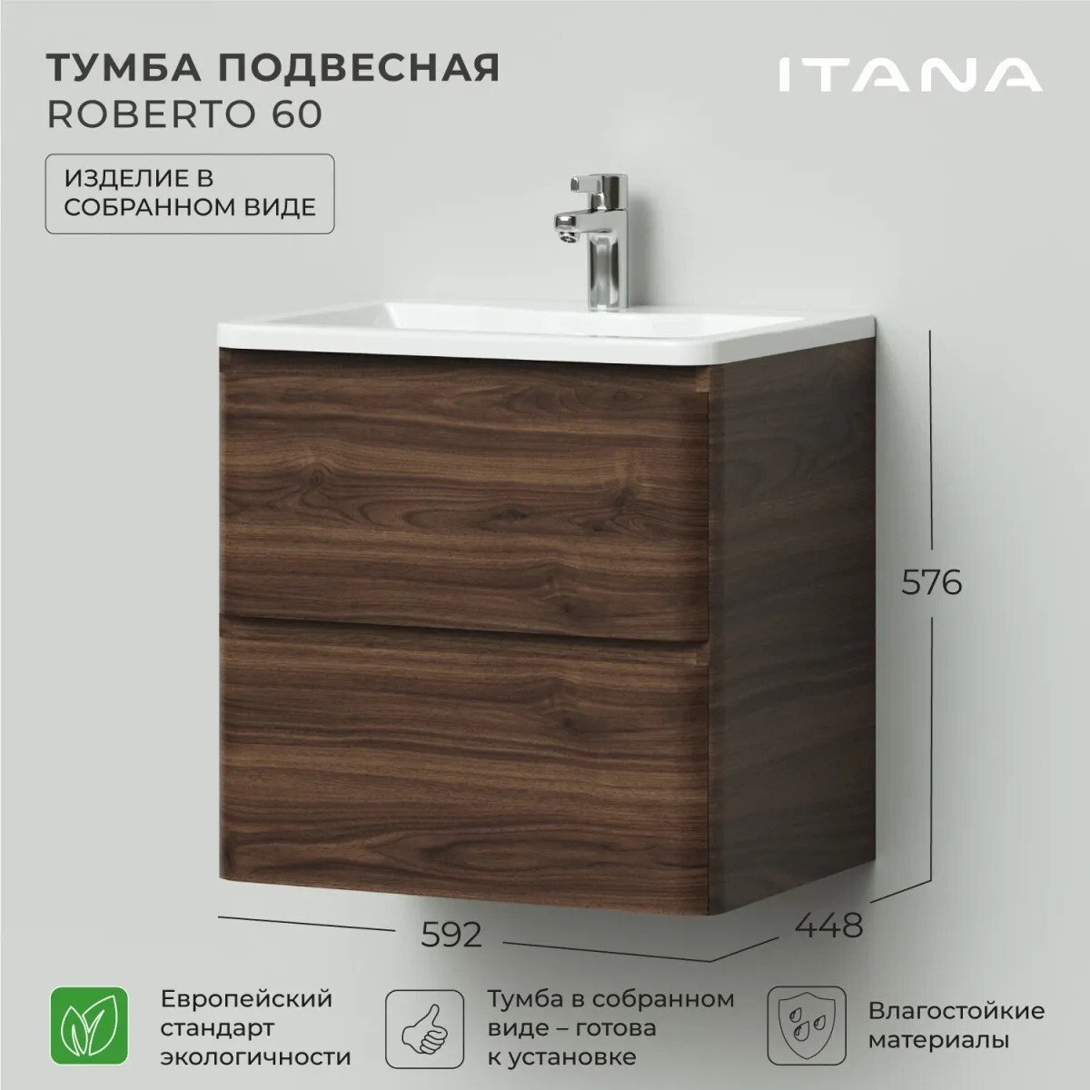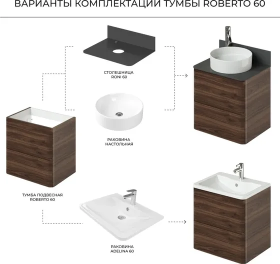 Мебель для ванной Itana Roberto 60 см, Орех Пекан шоколад стронг K-6496401