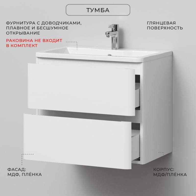 Тумба с раковиной Итана Roberto 70 4657773608252 белый глянец