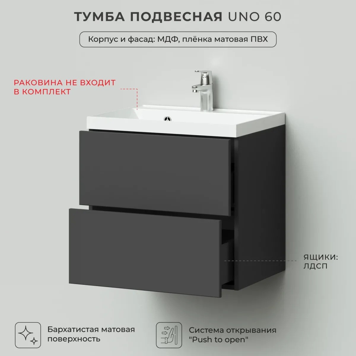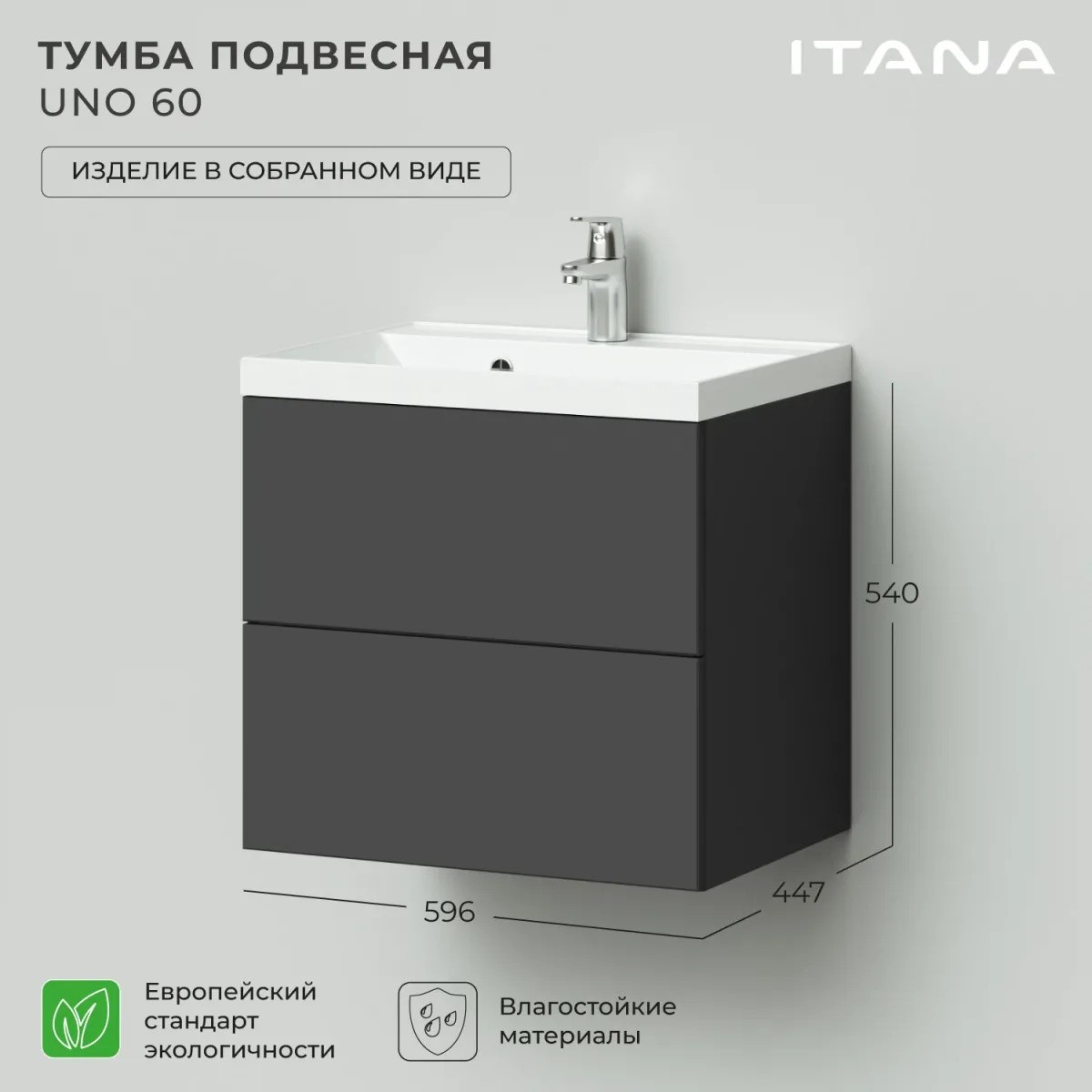 Тумба с раковиной Itana Uno 60 4657810335691 Графит
