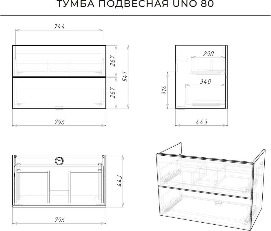 Тумба с раковиной Itana Uno 80 4657810335813 белый глянец