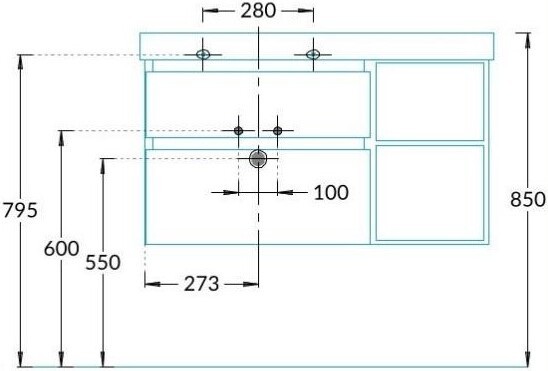 Два выдвижных ящика тумбы, доступной в трёх цветах, исключительно удобны для полотенец и бытовых мелочей: всё, что может понадобиться в ванной, будет под рукой. В версии размером 90 см предусмотрена открытая ниша в цвете «структурированный орех», расположенная справа или слева.